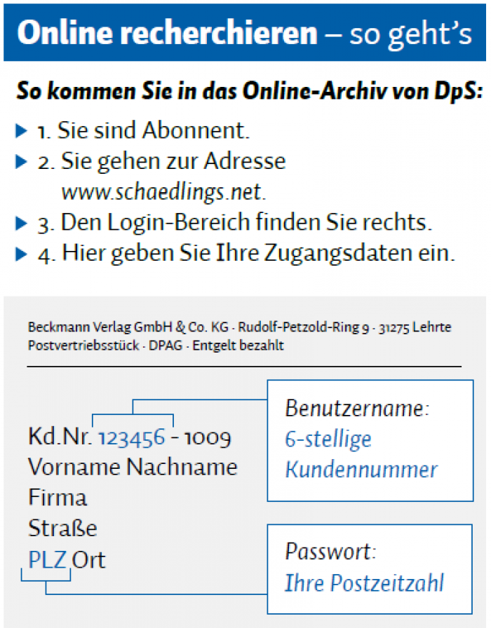 April-Ausgabe: jetzt schon online lesen! 14.04.2016 Liebe Leserinnen und Leser, Sie sind neugierig auf die April-Ausgabe von DpS? Dann werfen Sie doch schon jetzt einen Blick in die Online-Ausgabe Klicken Sie einfach den Link und loggen Sie sich mit Ihren persönlichen Abo-Daten ein. http://schaedlings.net/dps-ebook-kiosk/