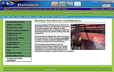 Die Europäische Kommission, Generaldirektion Umwelt, hat einen Fragebogen zur Verfügung gestellt, der allen Stakeholdern, d. h. allen von der Biozidrichtlinie Betroffenen (Behörden, Industrie, Anwender) Gelegenheit gab, die bisherigen Auswirkungen der Biozidrichtlinie mitzuteilen. Den Link zur Site für Stakeholder-Informationen finden Sie unten.