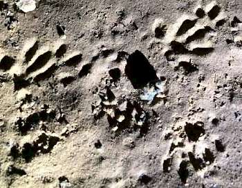Erste Ratte auf dem Mond? Könnt´man fast meinen. Aber nein, das sind Rattenspuren in einem Kriechkeller mit Lehmboden, der stets sehr feucht war. Auf der Suche nach der Befallsquelle entstand dieses Foto, das eine Mondlandschaft erinnert. Die Quelle des Rattenbefalls war letztlich ein defekter Kanal.
