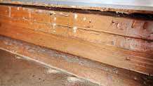 Schon wieder hatte eine Kirche ein Schädlingsproblem. Immer wieder gern: Holzwürmer im Dielenboden. Im Bild schaut man seitlich auf das Holzplateau, in das die Sitzbänke eingebaut sind. Wie wir da vorgehen werden, ist noch unklar. Vor allem, ob eine Teil- oder eine Komplettbehandlung sinnvoll ist, wissen wir noch nicht genau.
