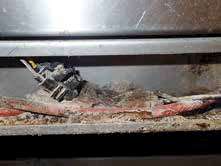 Wir haben einen Kunden mit einer Bäckerei übernommen. Bei der Erstbegehung des eigentlich ansonsten ganz ordentlichen Ladens machten wir manch eigenartigen Fund. Im Bild sieht man eine Maus, die offenbar durch Stromschlag getötet wurde. Sie lag schon recht lange in einem seitlichen Metallkabelkanal des Backofens. Mausetot in einem vollkommen mit Mehlstaub verdreckten Bereich.
